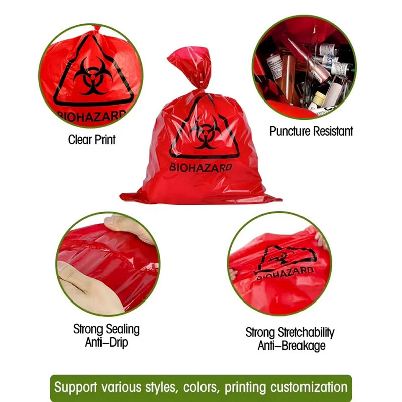 The factory supplies directly, with PE material medical waste bags. Suitable for various institutions such as hospitals, clinics, beauty salons, nursing homes, and retirement homes